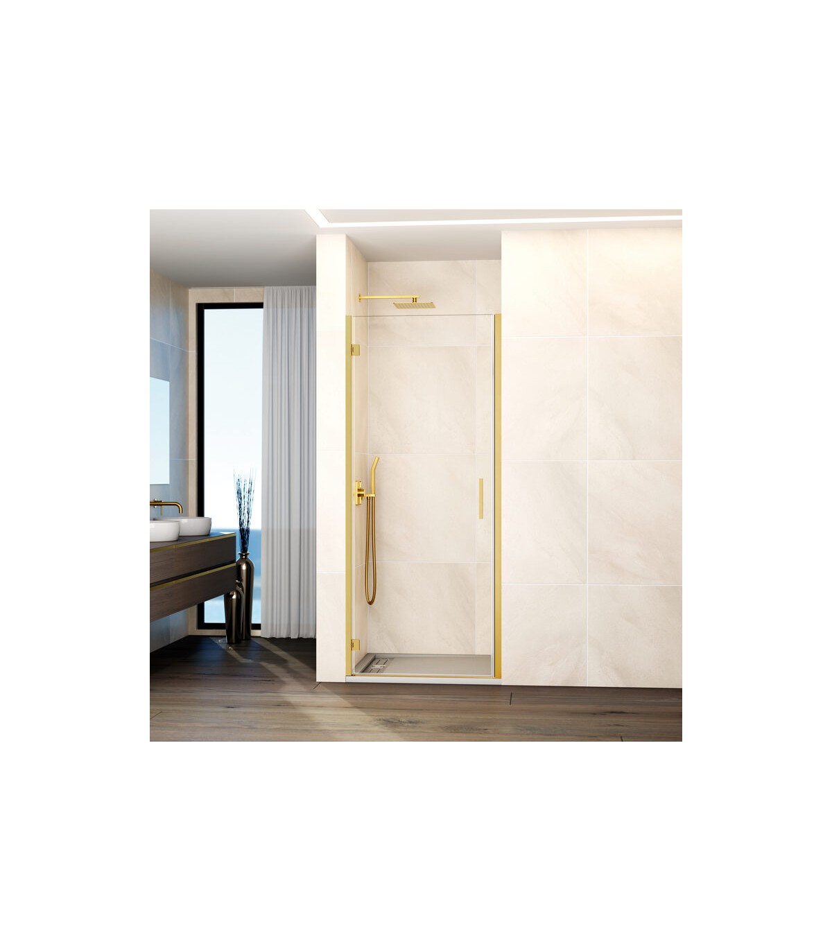 Box doccia 1 porta battente GLASS con cerniera su profilo e chiusura su profilo ORO