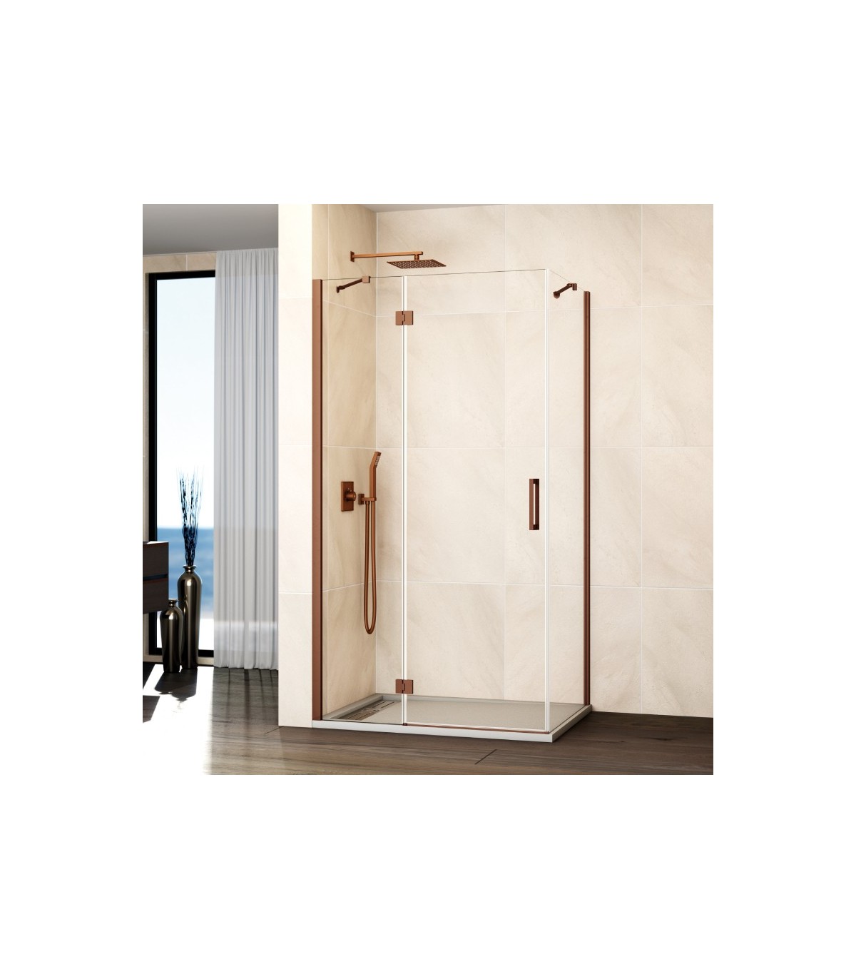 Box doccia Fisso + Battente con laterale fisso GLASS RAME chiusura magnetica