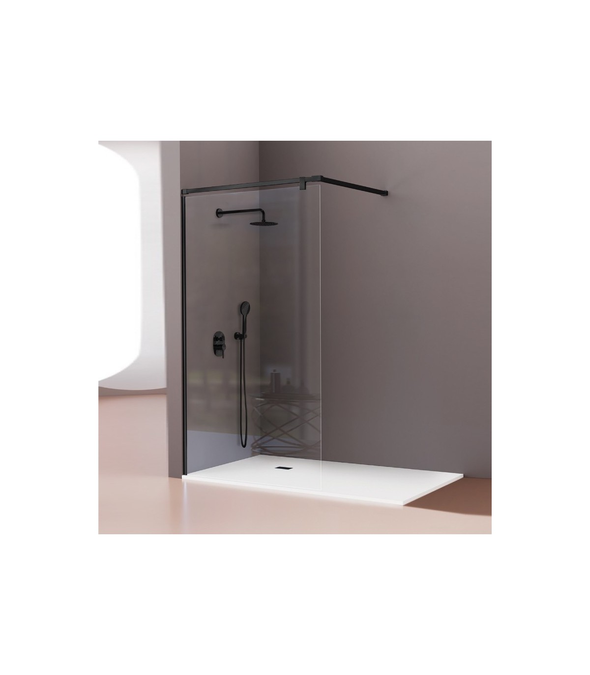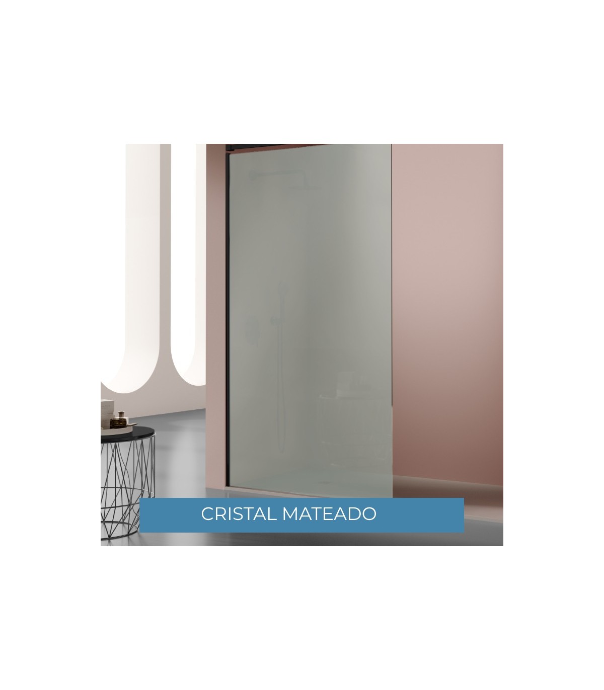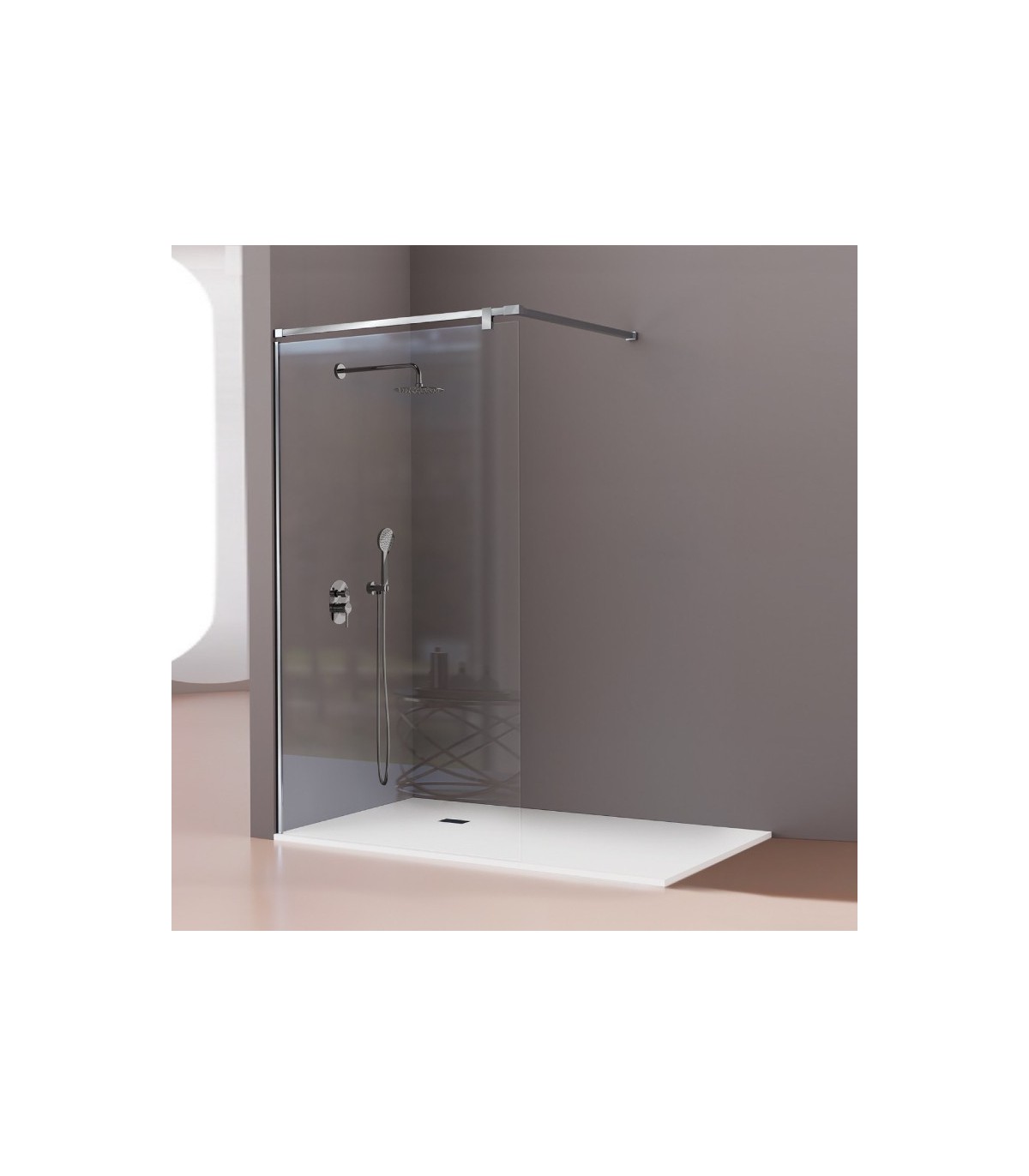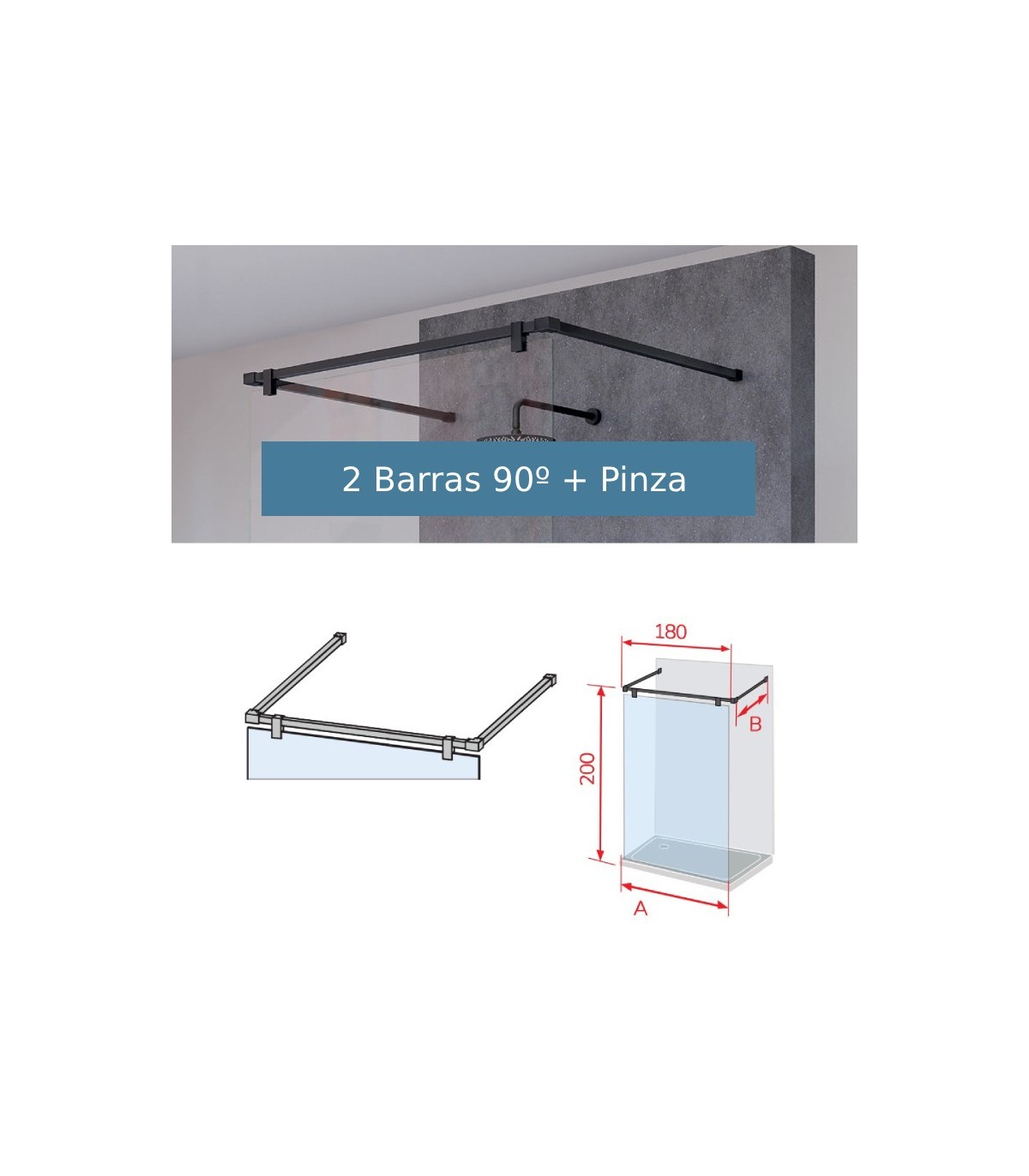 Include barra di fissaggio a 90º in acciaio inox da 100 cm, con la stessa finitura dei profili della mampara.