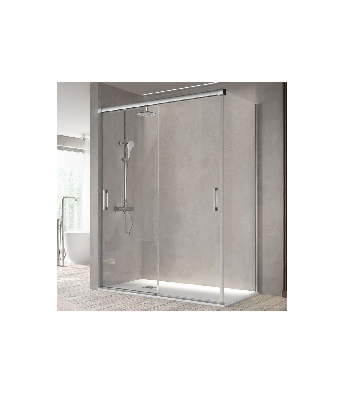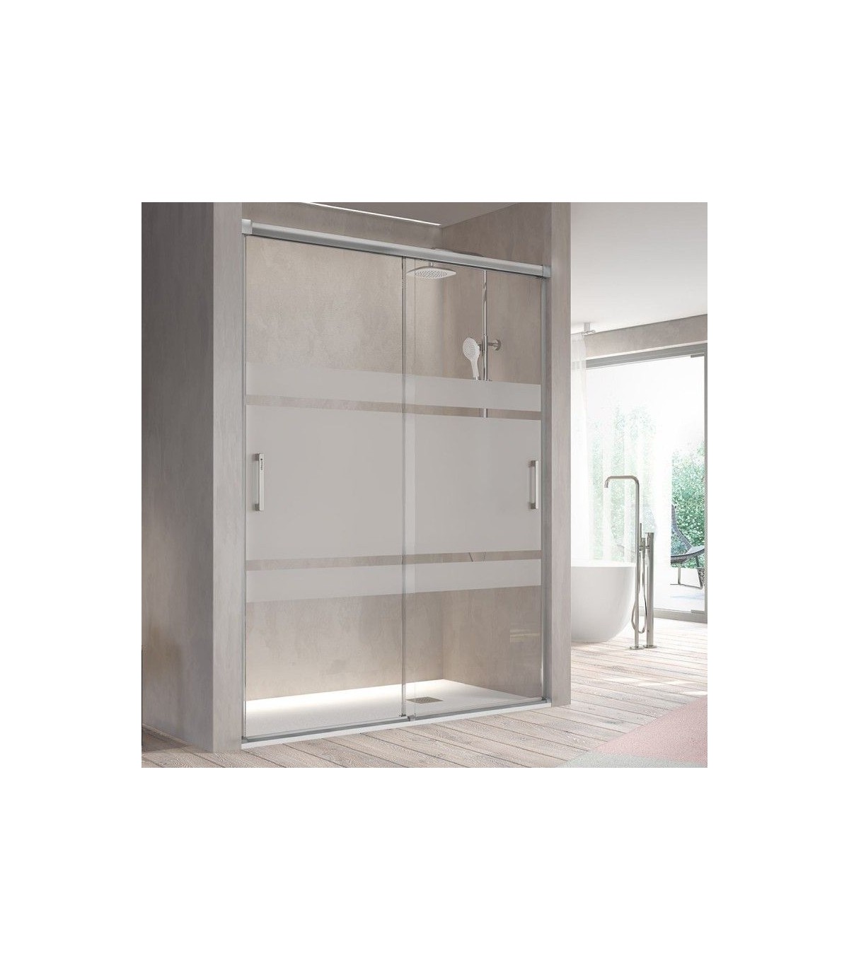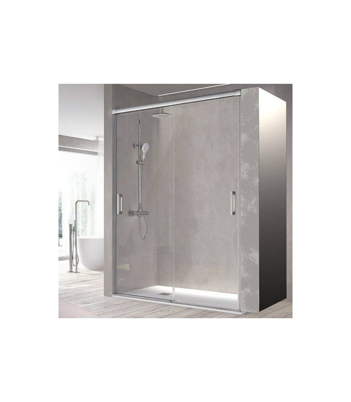 • Box doccia frontale composto da 2 porte scorrevoli.