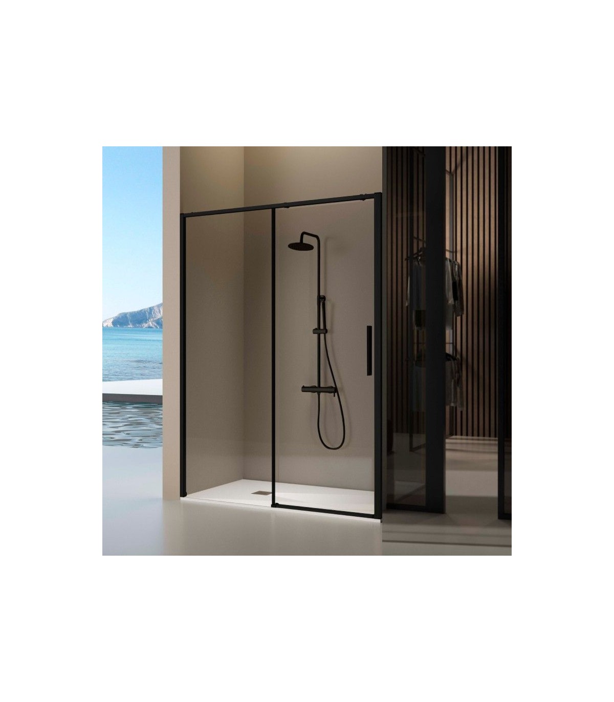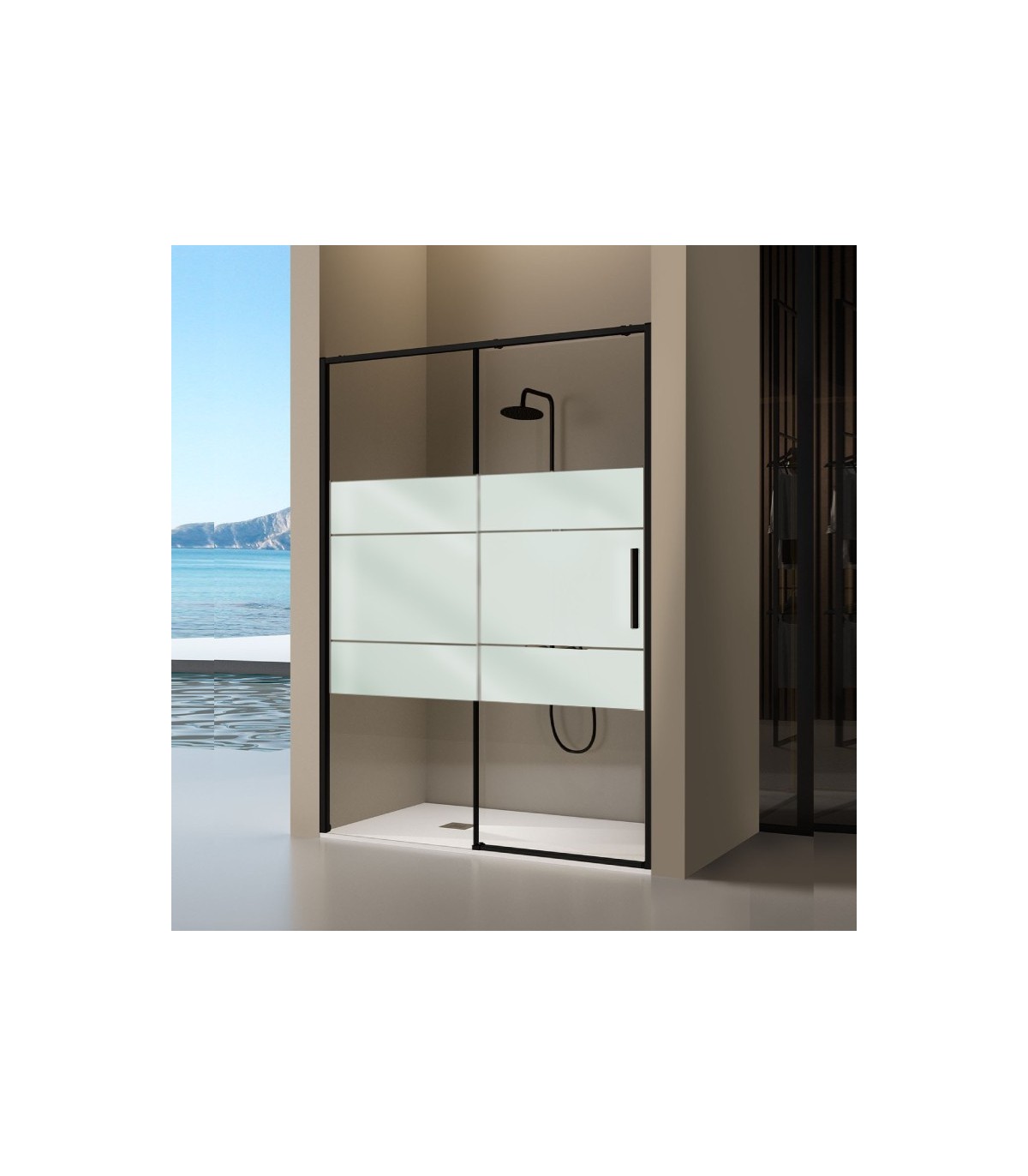 Box doccia frontale fisso + scorrevole DELTA NERA di Kassandra