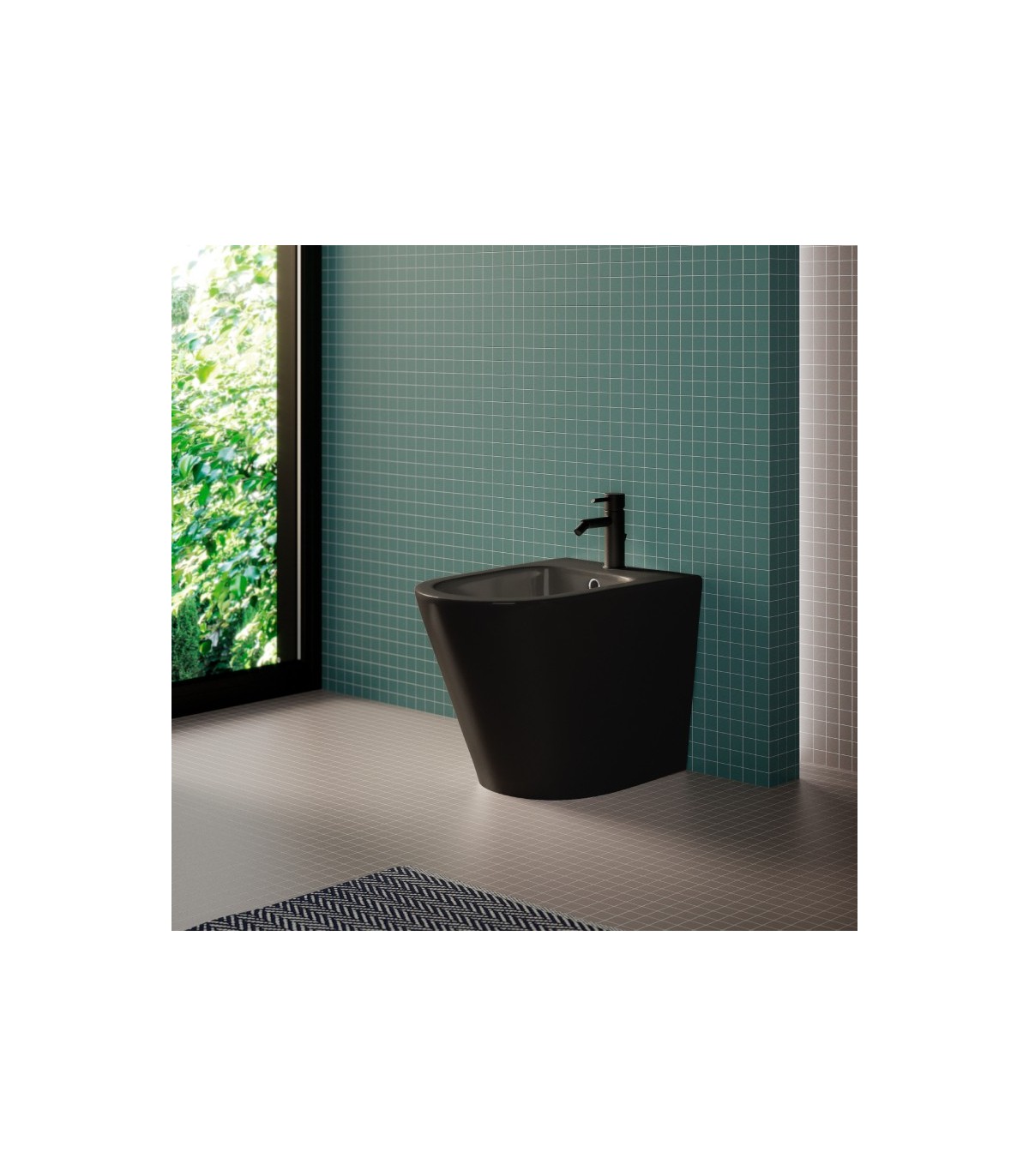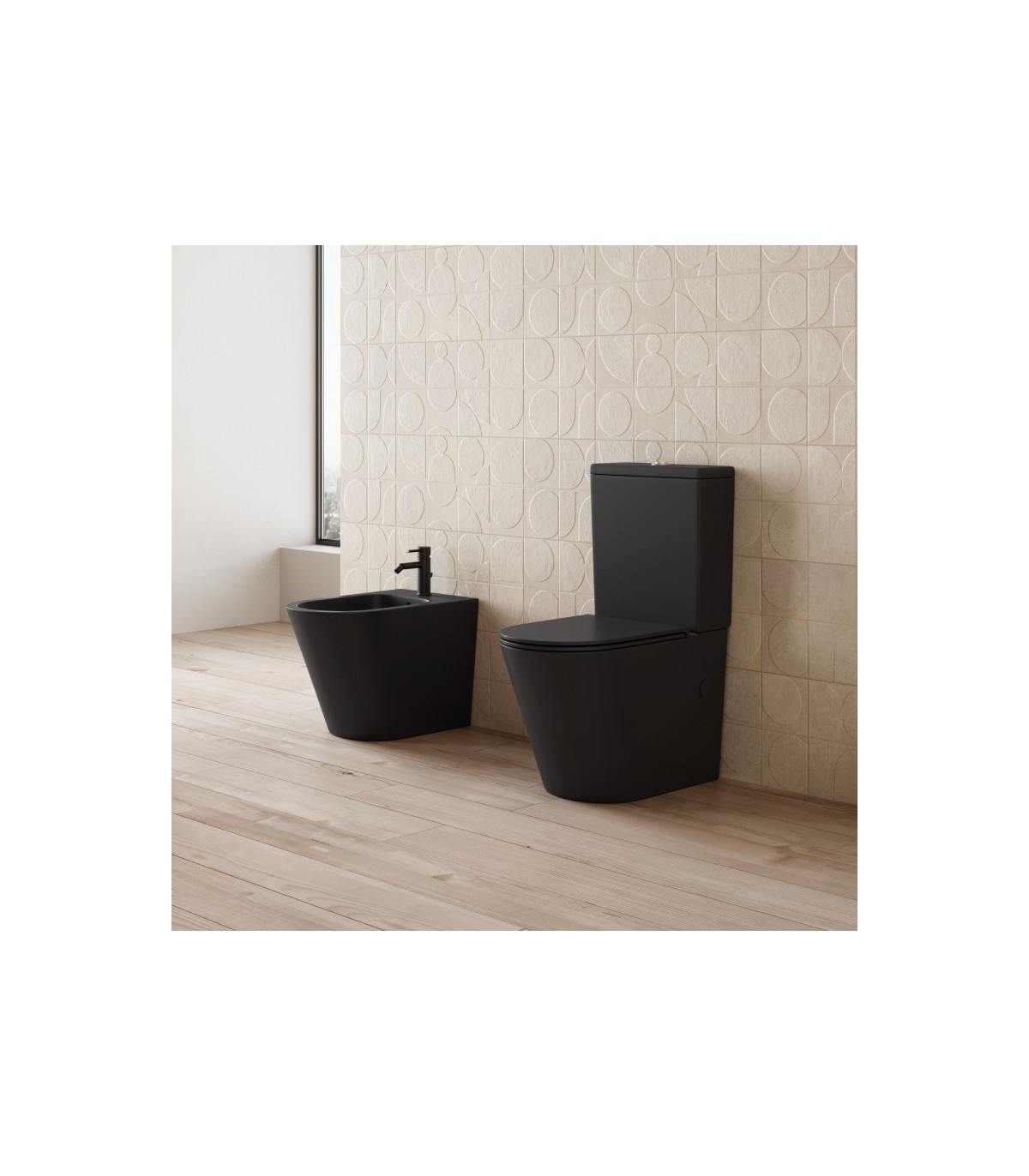 Inodoro nero opaco completo a pavimento con serbatoio basso Saona