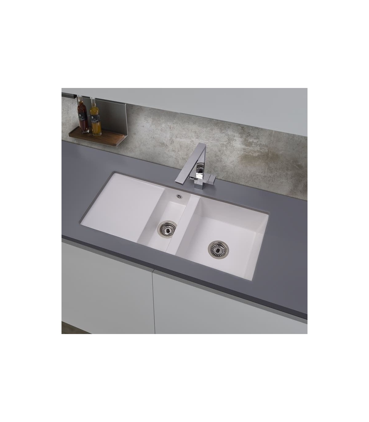 Lavello sottopiano da cucina con un lavabo e mezzo e scolapiatti ULISES di ISHO-GEL.