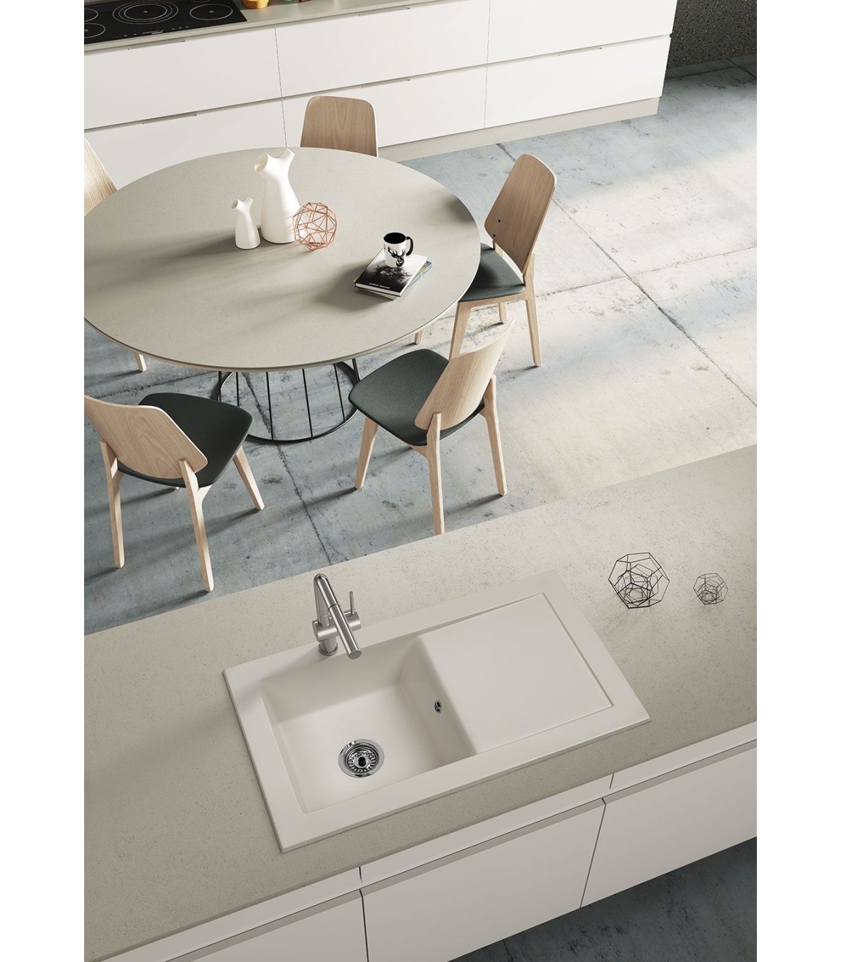 - Lavello da cucina modello ATON, realizzato con resine isoftaliche indurite con microsfere di vetro e altri prodotti (ISHO-GEL*), idonei per elementi sanitari, con resistenza speciale all'idrolisi.