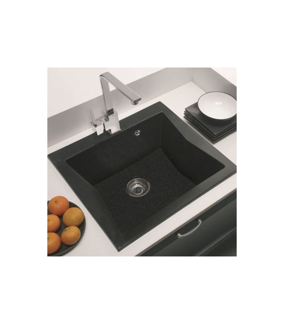 - Lavello da incasso sotto piano di lavoro, realizzato in resine isoftaliche indurite con microsfere di vetro e altri prodotti (ISHO-GEL*), ideali per elementi sanitari, con particolare resistenza all'idrolisi.