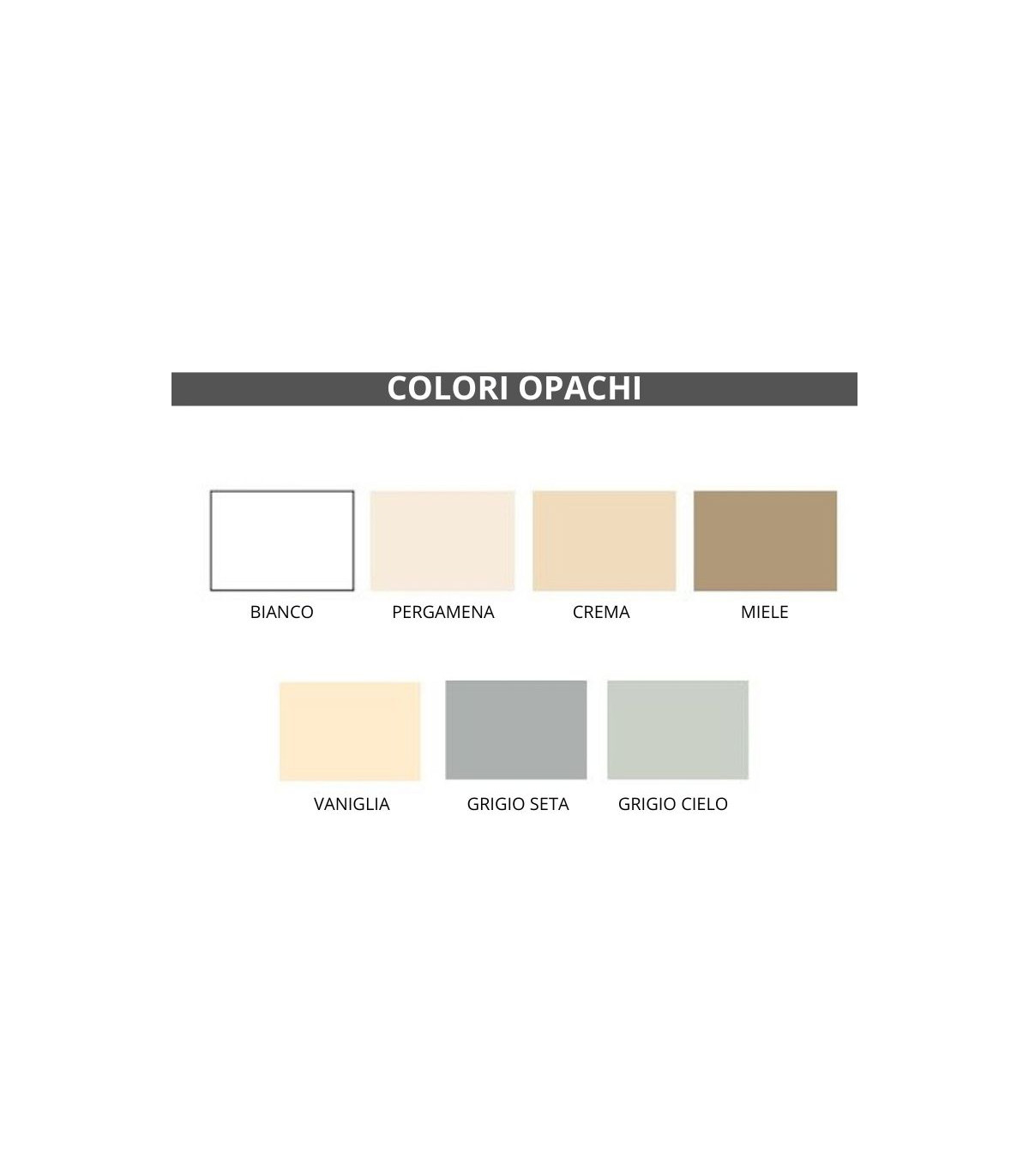 - Colori disponibili: Bianco opaco, Pergamon opaco, Crema opaco, Miele opaco, Vaniglia opaco, Grigio seta opaco e Grigio cielo opaco.
