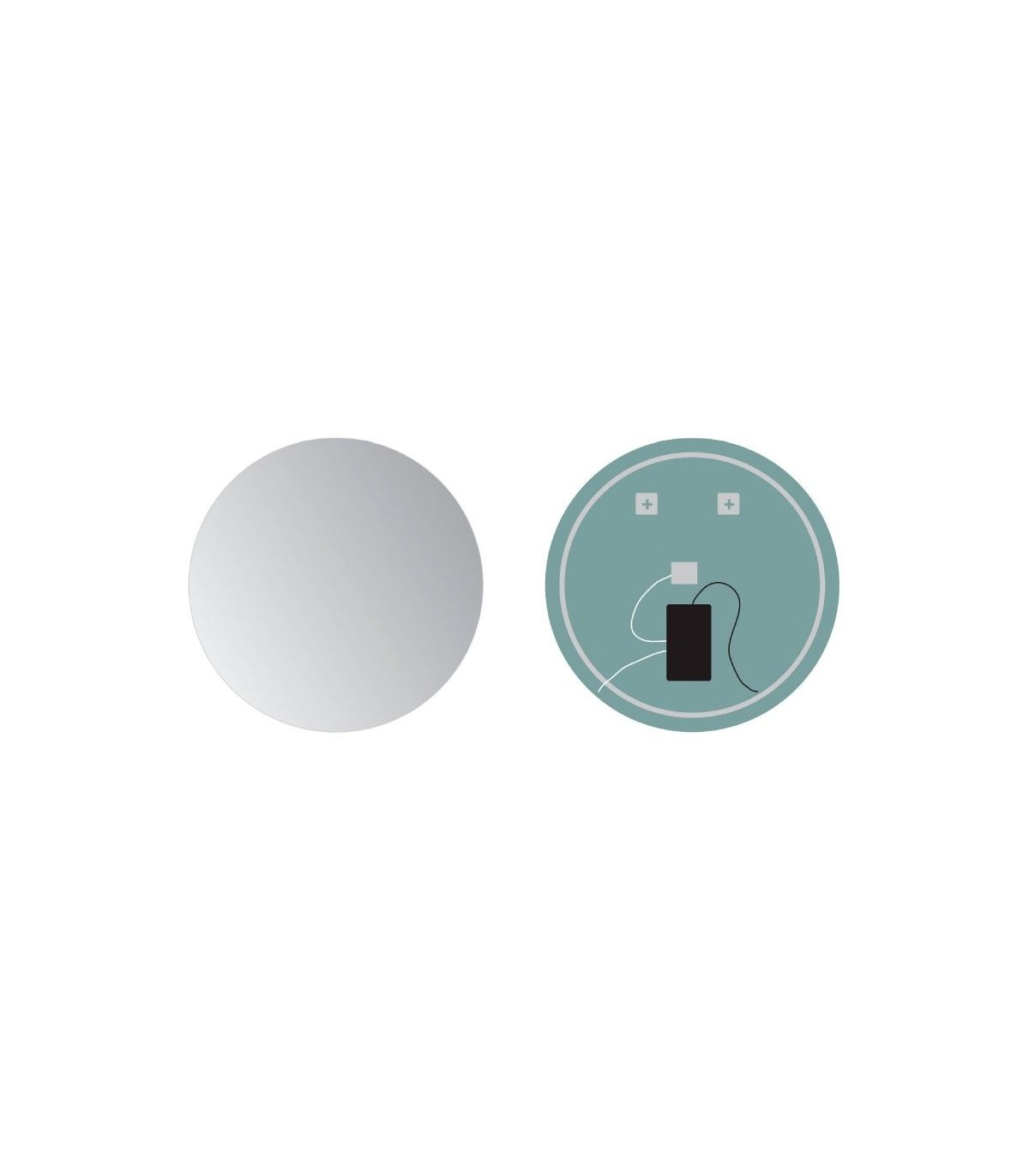 - Lo specchio è disponibile nelle misure da 60, 70 e 80 cm con luce bianca calda (3000 K) o bianca fredda (6500 K).