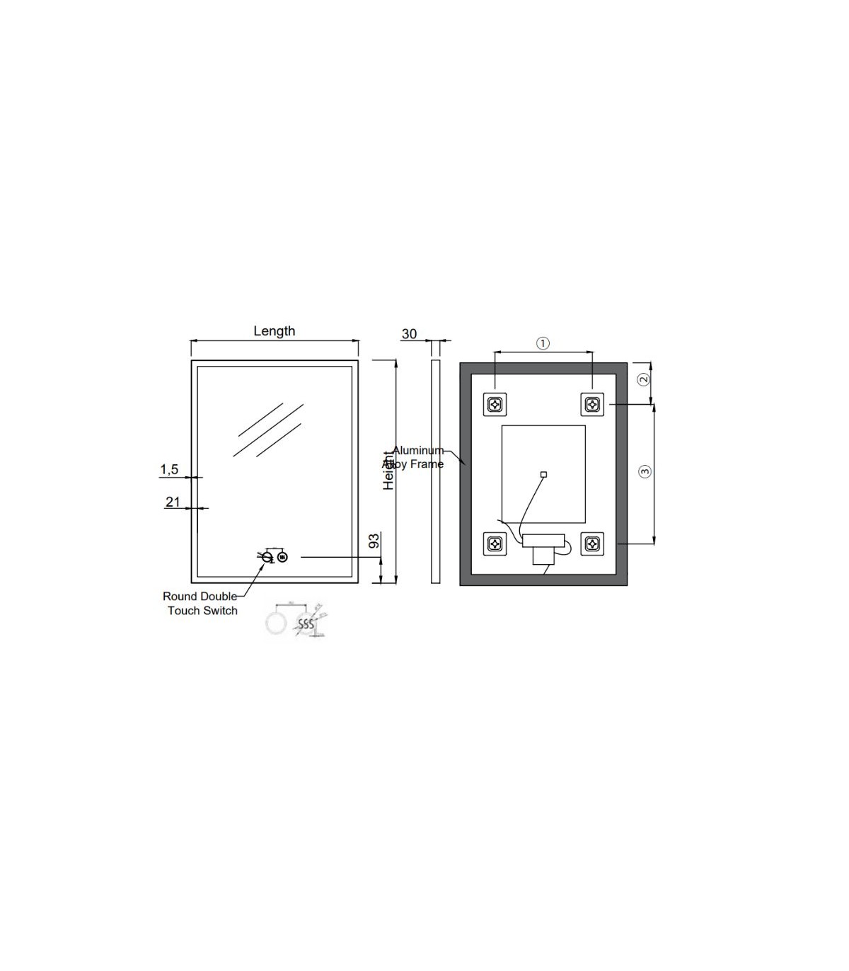 - Specchio rettangolare liscio con retro in alluminio.