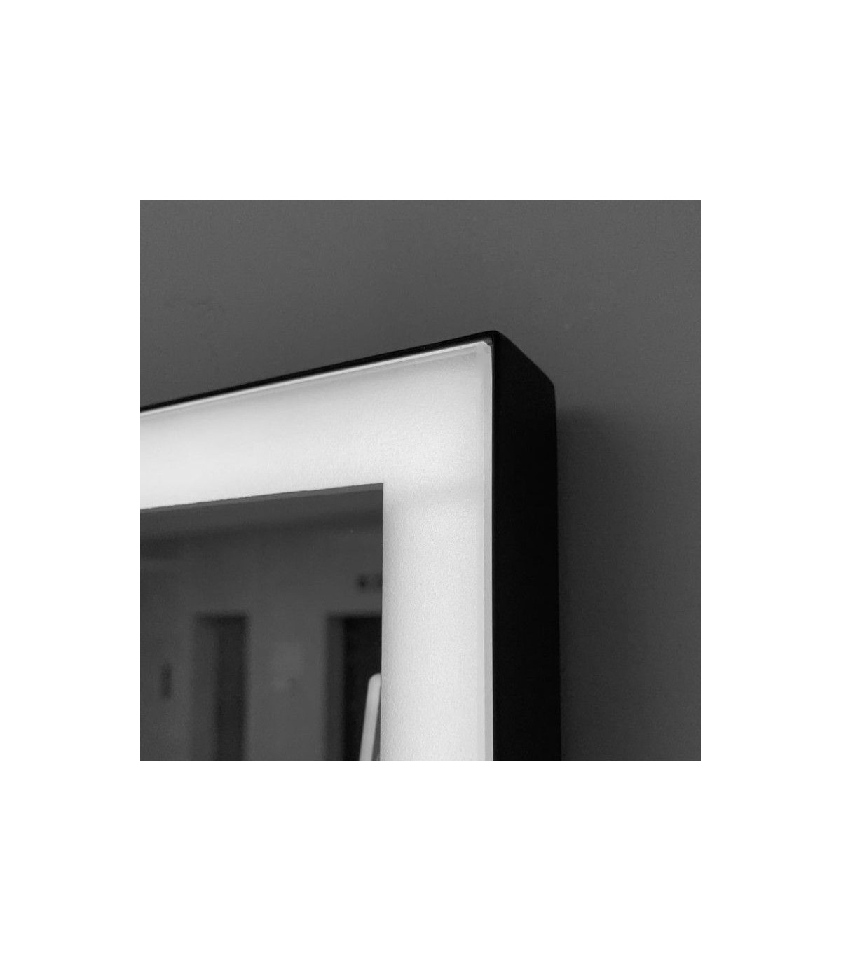 Specchio quadrato con cornice nera e luce LED SUIZA