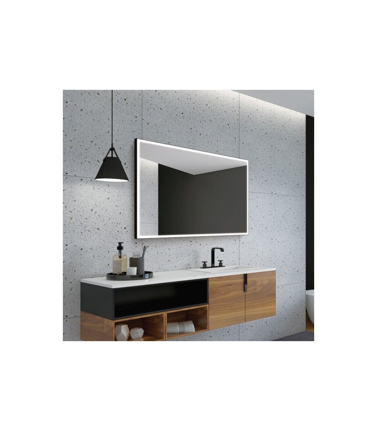 Specchio quadrato con cornice nera e luce LED, modello SUIZA.
