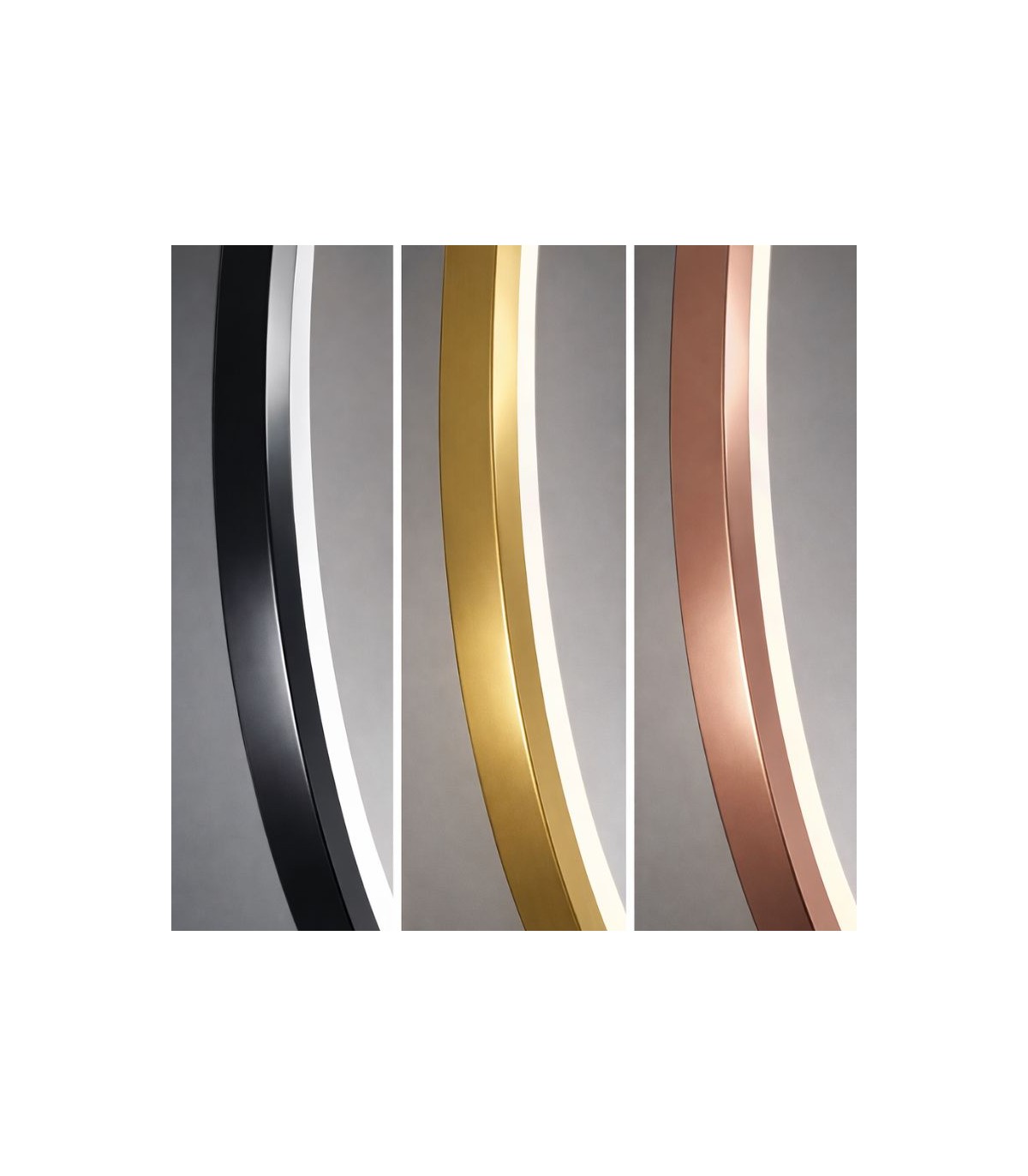 - Cornice in alluminio disponibile nei colori nero opaco, oro rosa e oro spazzolato.